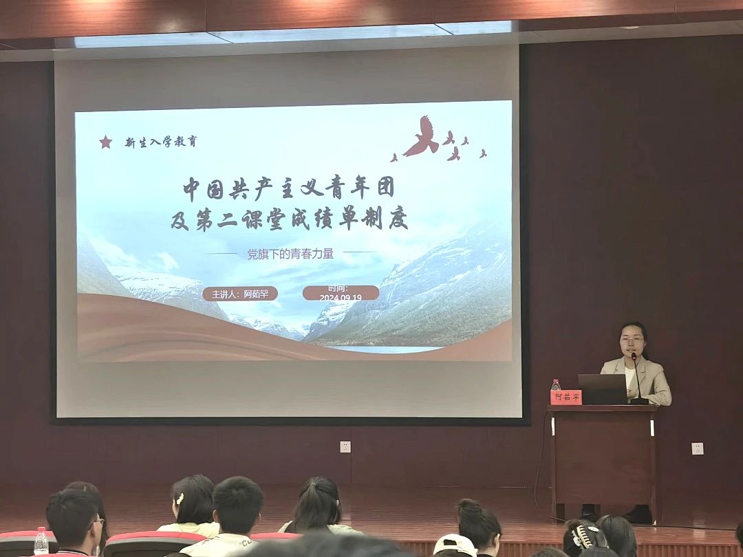 学院团总支副书记阿茹罕老师为大家介绍了中国共产主义青年团发展团员的准则、程序和智慧团建的相关内容。此外,阿茹罕老师还为大家细致讲解了学校的第二课堂成绩单制度。