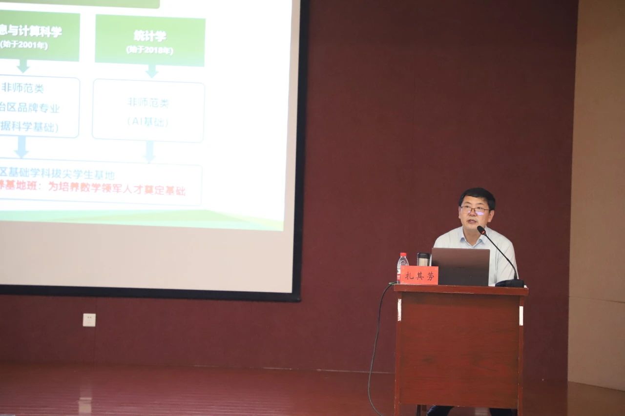 毕力格图老师,冯世斌老师和张涛老师分别面向数学与应用数学、信息与计算科学和统计学专业的新生进行了专业思想教育。老师们对各专业的重要课程分别进行了讲解,鼓励同学们端正态度,钻研学术,度过一个充实且有意义的大学生活。